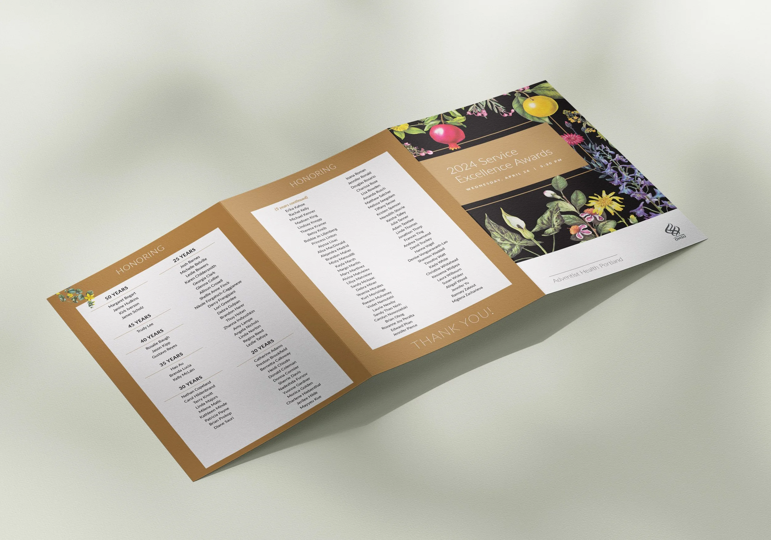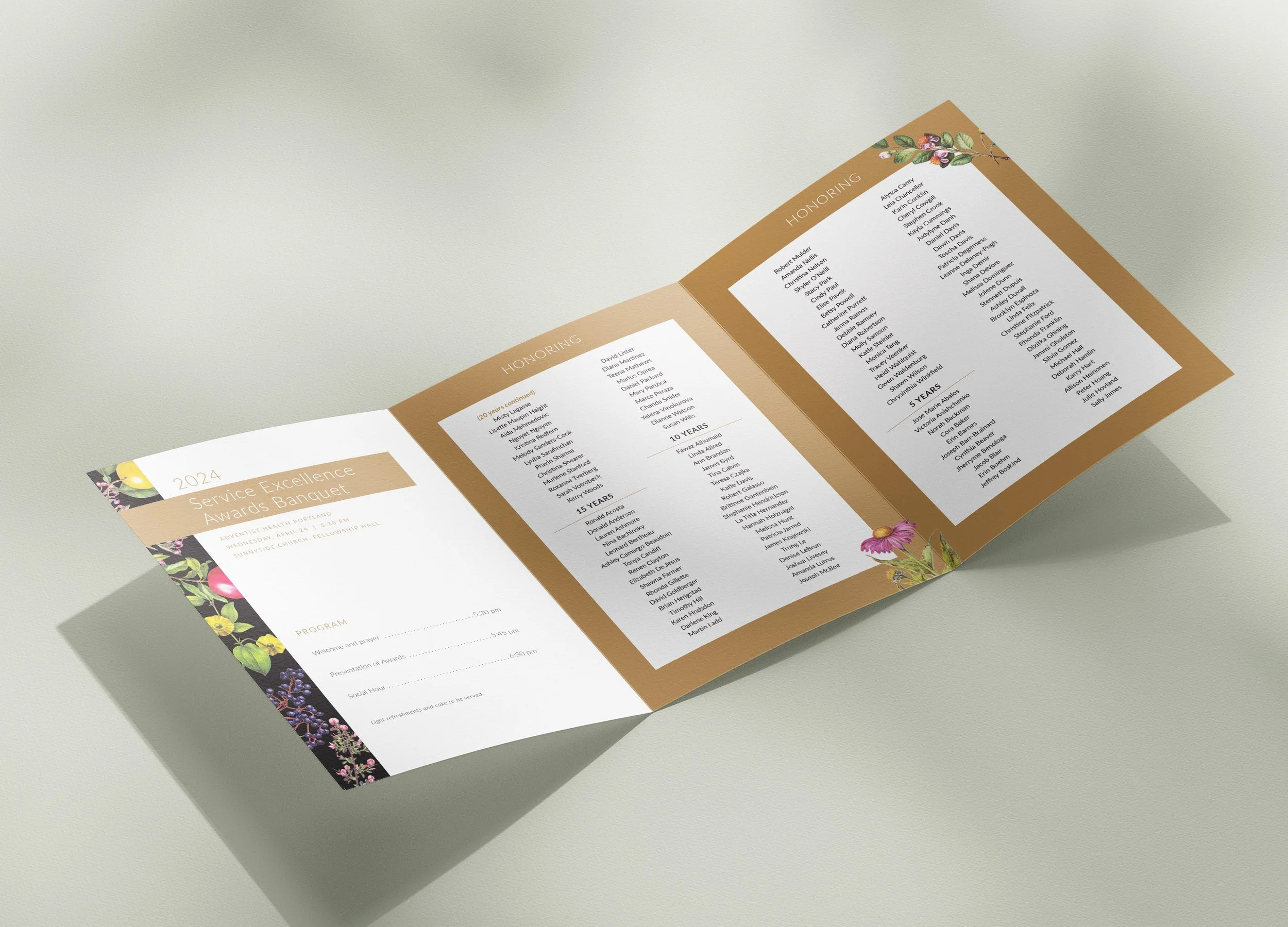 Various event collateral for Adventist Health Portland’s yearly Service Excellence Awards – a banquet honoring associates.